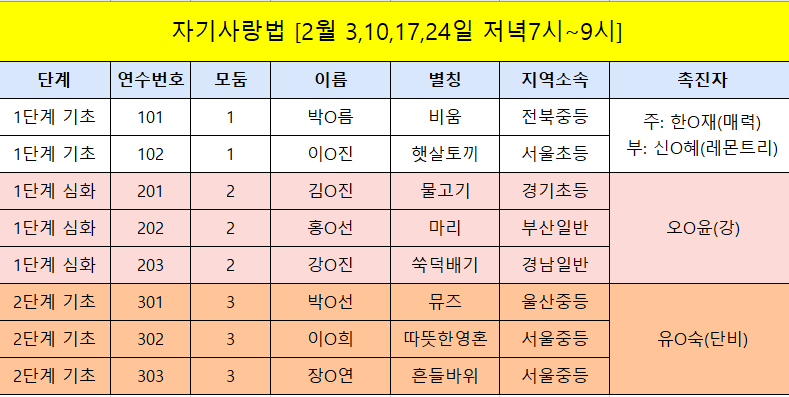 | 자기사랑법 연수 안내_2025년 2월 참가 동기 나누기 (0) | 2025.01.29 |