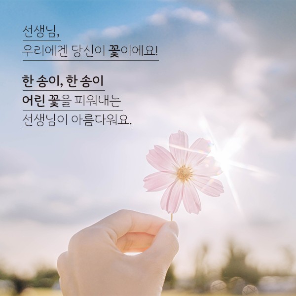 ☀ 3월, 선생님을 위한 자기사랑법 연수 (자율, 소그룹실습 중심, zoom) 안내 3월, 우리는 또 새로운 출발을 하네요. 정신없이 바쁜 3월이지만, 그럴수록 내면의 여유가 생기도록 선생님 자신을 돌보고 사랑하는 시간이 필요하지 않을까요? 교사의 자기 사랑은 학생들과 소중한 사람들을 더 따뜻하게 사랑하는 원동력입니다. -연수일정: 3월 9,16,23,30일 저녁 7시~9시 - 참가 대상: 교사 - 신청 마감: 2월 24일(화) 22시 - 참가비 : 2만원 (아동청소년 자선단체에 기부, 참가 신청 후 별도 안내) |