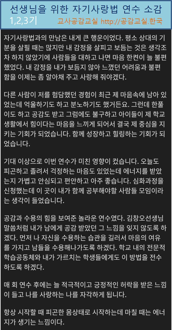 | 교사공감교실의 '자기사랑법'을 추천합니다. |