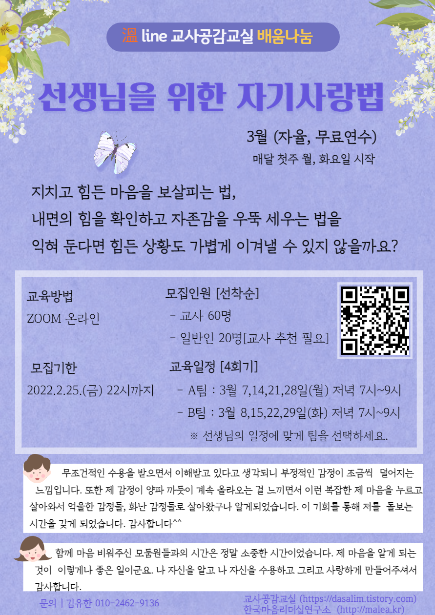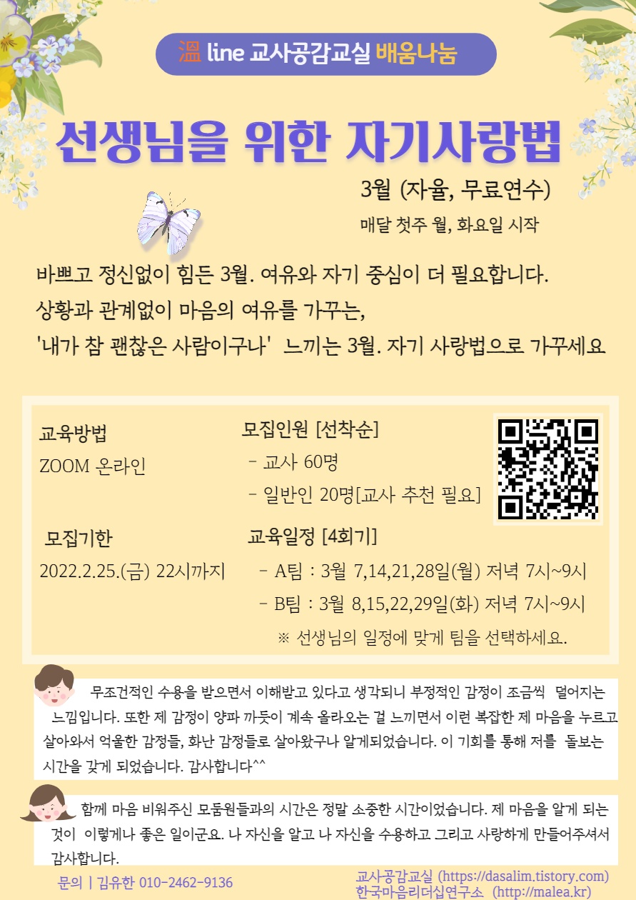 ☀ 2022년 3월 교사를 위한 자기사랑법 연수(무료, zoom)
